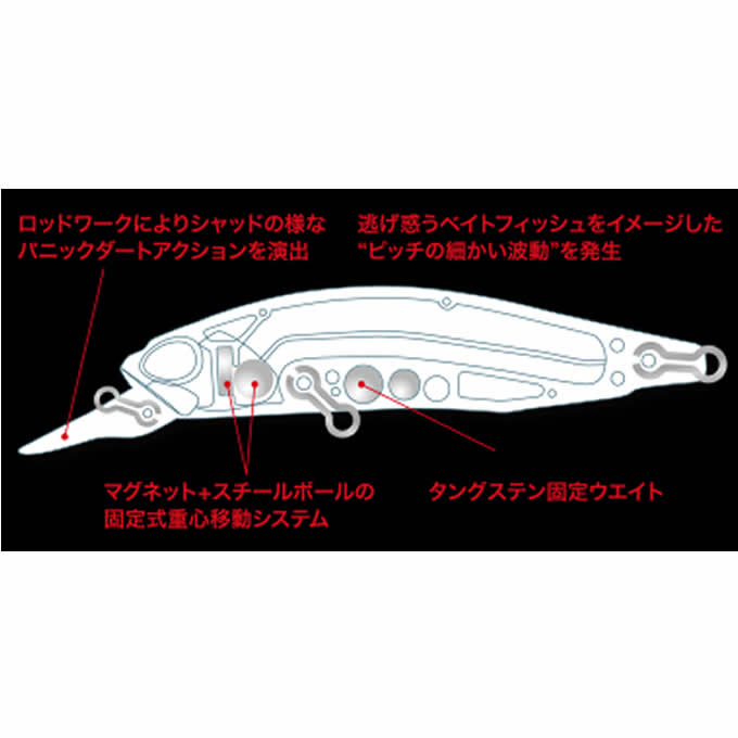 The beefy body has been equipped with a magnet detaching moving weight system for absolute castability for land based anglers to get their lure out in strong head winds and side winds. Despite the small 63mm body sized, anglers will be able to utilize the finesse bait-tackle.